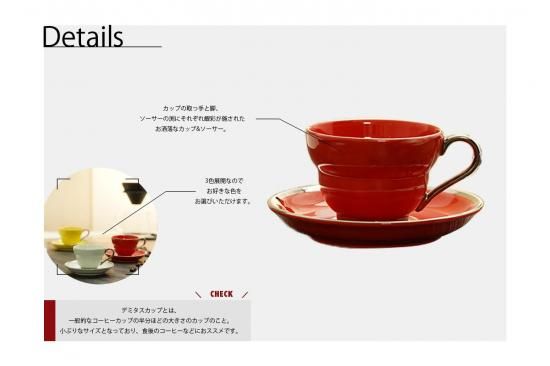 デミタスカップとは、一般的なコーヒーカップの半分ほどの大きさのカップのことを指します。