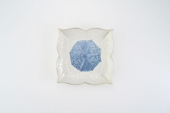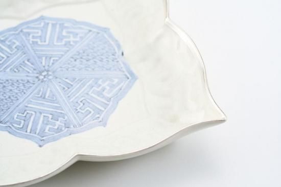 ※こちらの商品は四弁正角向付染付間取地紋縁銀彩のみの販売となります。