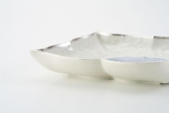 『四弁正角向付染付間取地紋縁銀彩』は、上品で美しいデザインが際立つ、特別な器です。