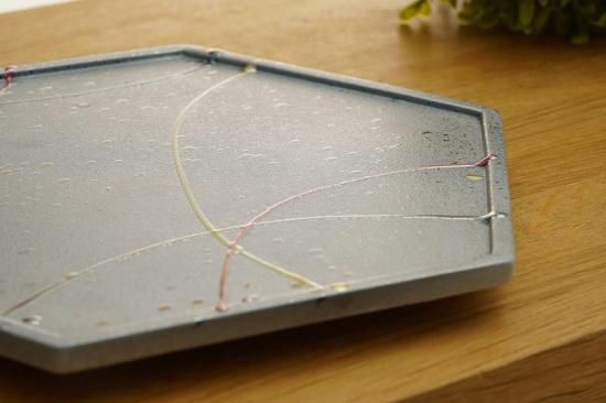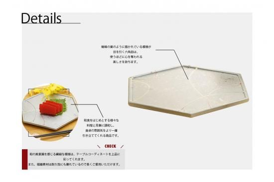 蜘蛛の巣のように描かれている模様が目を引く『錦くもの糸正六角皿』は、使うほどに心を奪われる美しさを放ちます。