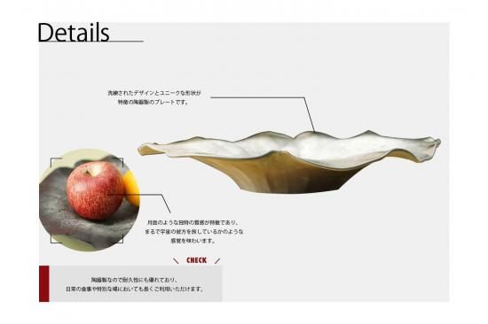 このプレートは、月面のような独特の質感が特徴であり、まるで宇宙の彼方を旅しているかのような感覚を味わいます。