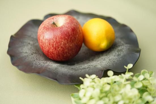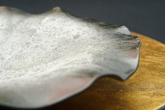 MoonSurfaceロータスプレートは、洗練されたデザインとユニークな形状が特徴の陶器製のプレートです。