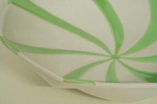 藤正のヒワ釉掛分ラスター八方レリーフ平鉢は、美しいヒワ釉の上に緻密なレリーフが現れた、上品で高級感あふれる中鉢です。