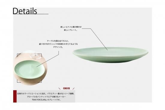 テーブルを囲む全ての人に、盛り付けを行うシェフの刺激をかきたてるようなデザイン力に加え、熱衝撃や対衝撃に強い設計、またオーブン、電子レンジにも対応しており機能性も抜群。