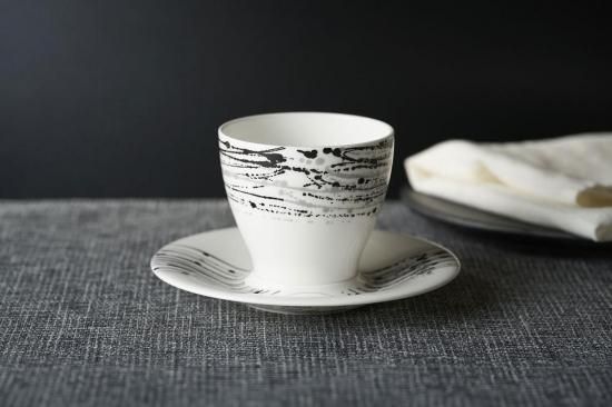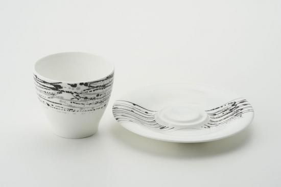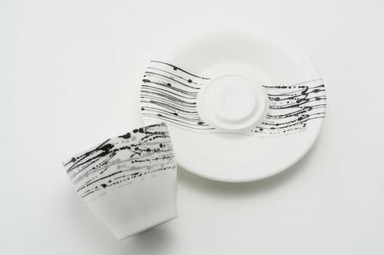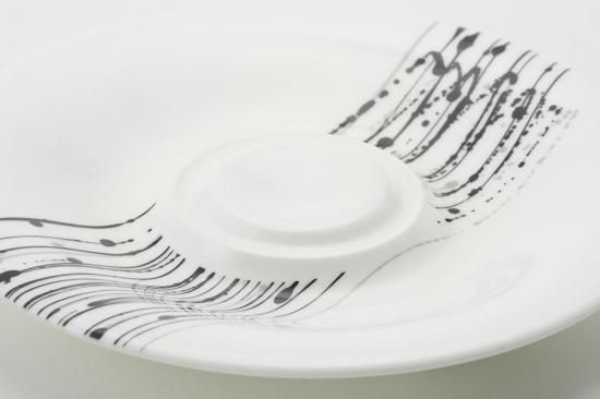 シェフがインスパイアされるような「おもしろい器」をコンセプトに、コシノヒロコ氏の墨作品から生まれました。