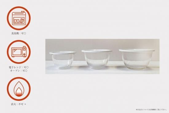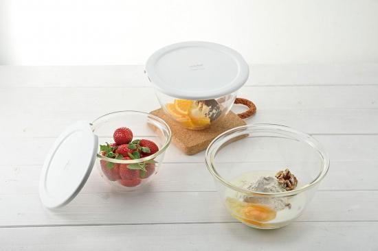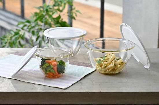 ※こちらの商品はレンジフタ付耐熱ガラス製ボウル 3個セットのみの販売になります。