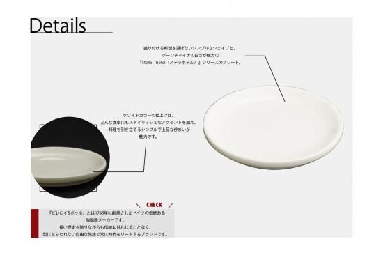 盛り付ける料理を選ばないシンプルなシェイプと、ボーンチャイナの白さが魅力の『Stella hotel (ステラホテル )』シリーズのプレート。