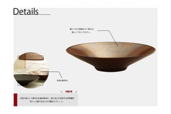 盛りつけた料理がよく映える美しいブロンズのプレートは日常使いにもおもてなしにも使え、和洋中どんな料理にも合います。