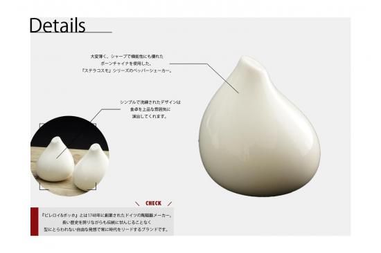 大変薄く、シャープで機能性にも優れたボーンチャイナを使用した、『ビレロイ&ボッホ』の『ステラコスモ』シリーズのペッパーシェーカー。