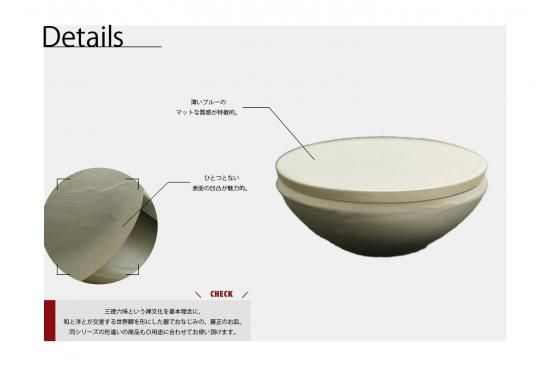 薄いブルーのマットな質感が特徴的で、ひとつとない表面の凹凸が魅力的。