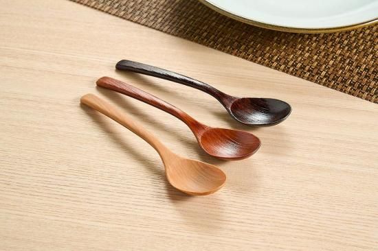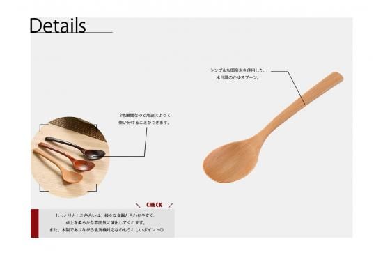 シンプルな国産木を使用した、木目調のかゆスプーン。