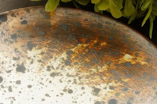 錆のような雰囲気の釉薬の景色に、黒の錆筋模様がきまったシックでスタイリッシュな仕上がり。