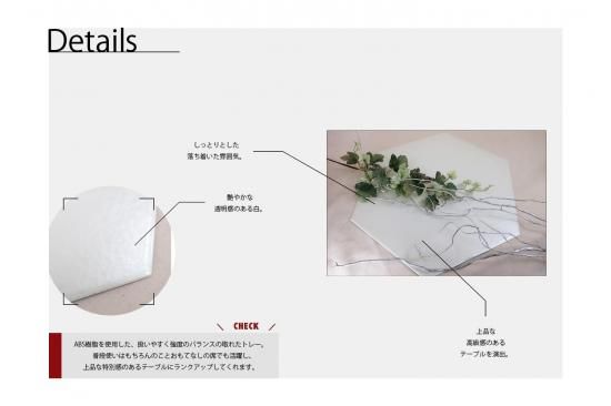 普段の食事をまるで料亭やホテルのような雰囲気にしてくれるこちらの六角プレートはABS樹脂を使用しています。