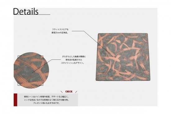 ※こちらの商品は高台正角皿黒サビ絞雲赤刷毛のみの販売となります。