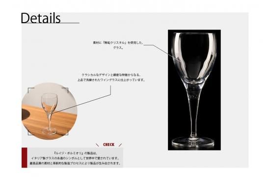 クラシカルなデザインと緻密な特徴からなる、上品で洗練されたワイングラスに仕上がっています。