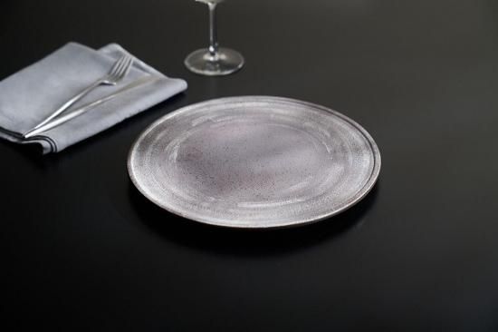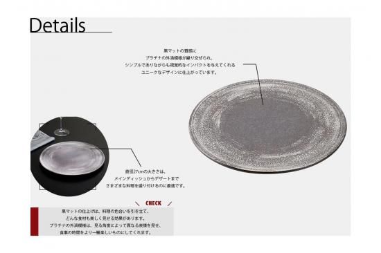 『黒マットプラチナ外渦27cmフラット丸プレート』は、その洗練されたデザインと実用性で、食卓に華やかさを添える逸品です。
