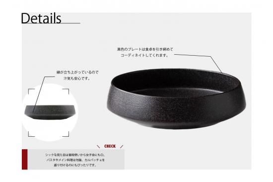 こちらはつやをおさえたマットな質感が落ち着いた印象で、黒い器を使ったことが無いという方にもおすすめ。