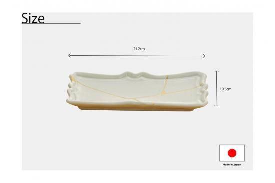 伝統工芸「有田焼」の技法を用いて作られた、風格漂う灰釉と金継ぎが美しい、和の趣あふれる桔梗渕皿です。