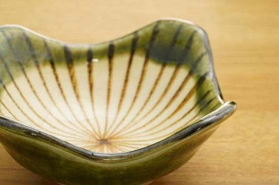 昔ながらの黄瀬戸と織部を組み合わせたものを現代風にアレンジ。