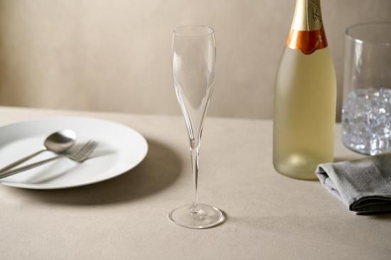素材に『無鉛クリスタル』を使用した、スパークリングワイン向けのグラス。