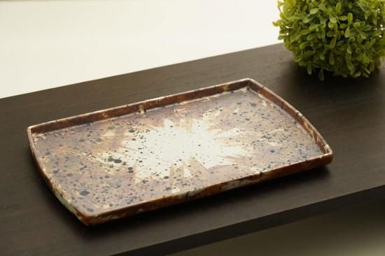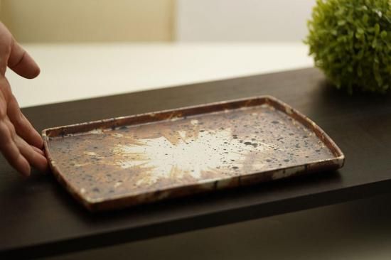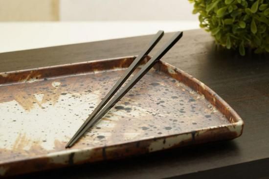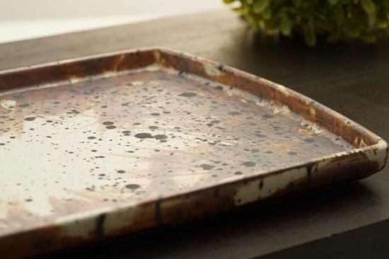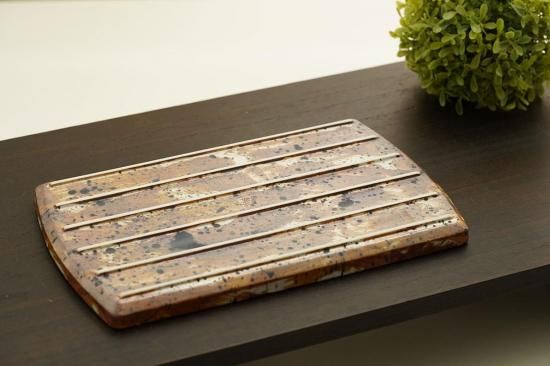 錆のような雰囲気の釉薬の景色に、黒の錆筋模様がきまったシックでスタイリッシュな仕上がり。