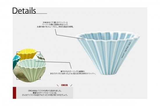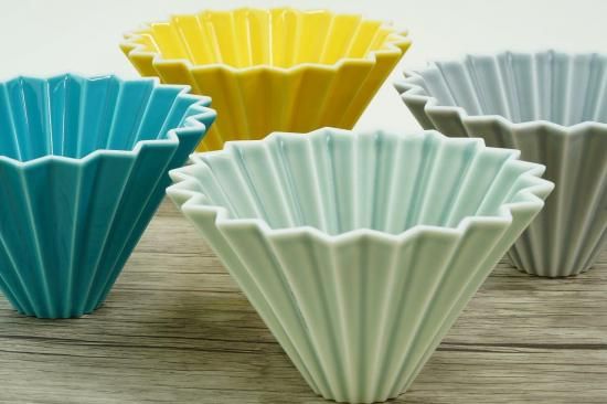 鮮やかなカラーリングと縦溝が、まるでオリガミを折ったように見えるORIGAMIのドリッパー。
