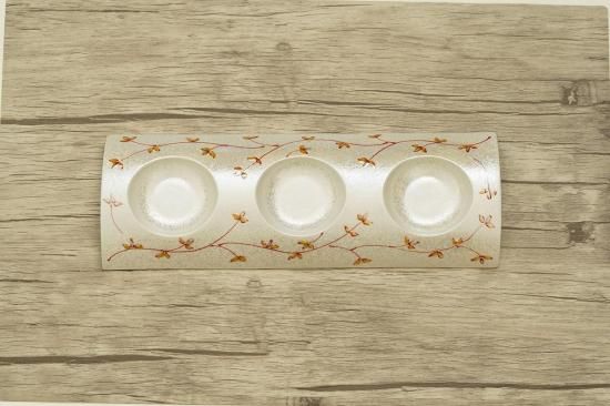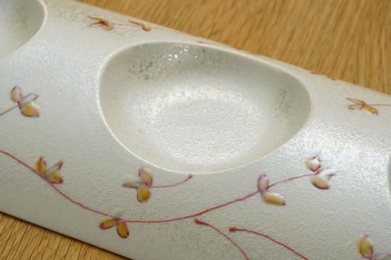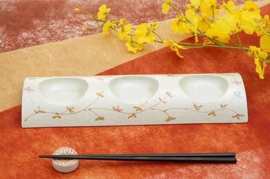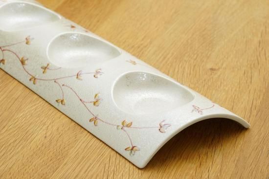伝統工芸「有田焼」の技法を用いて作られた、錦赤小花つる草模様が彩る、食卓を華やかに演出してくれるコンボトレイです。
