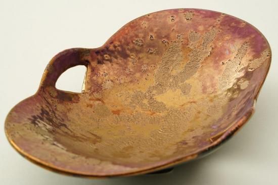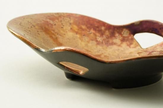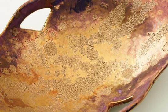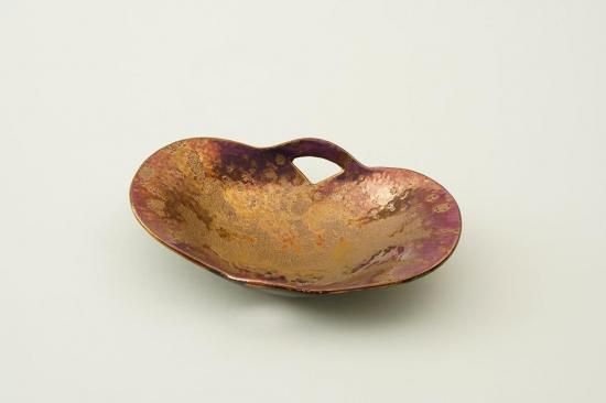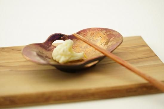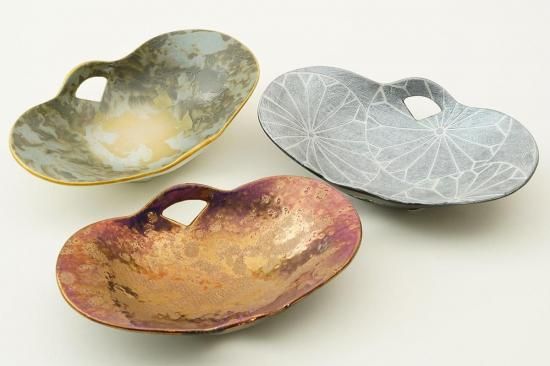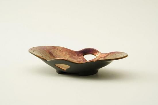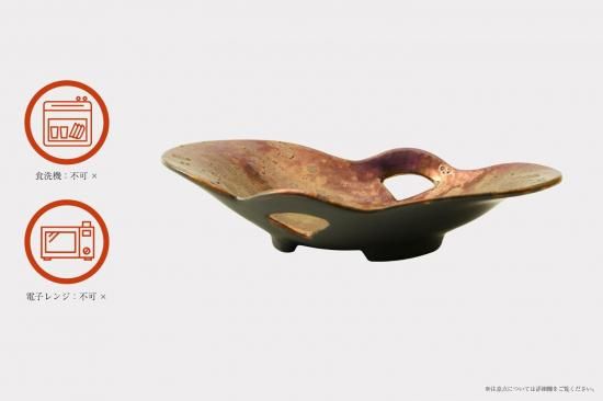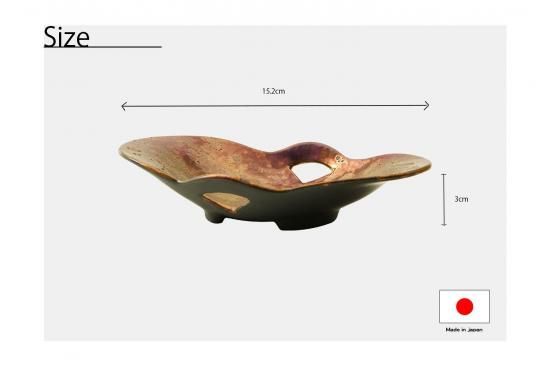 「ブロンズしぶき透かし二葉中付」は、美しいブロンズのしぶき模様が施された陶器のお皿です。