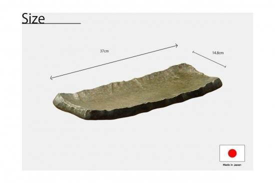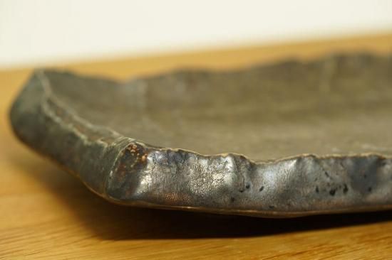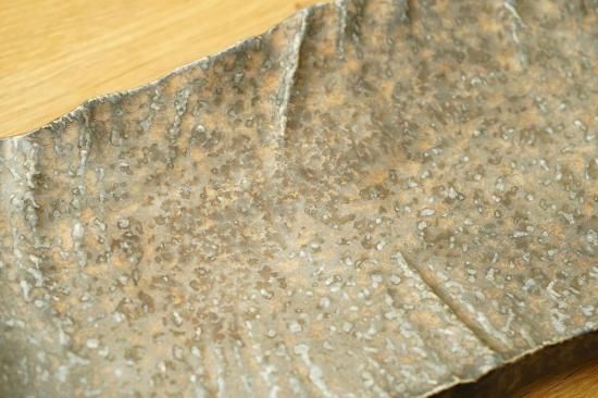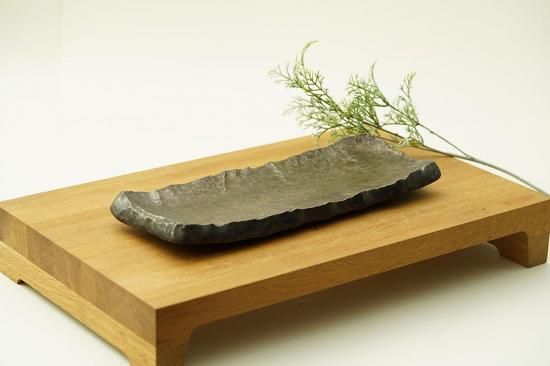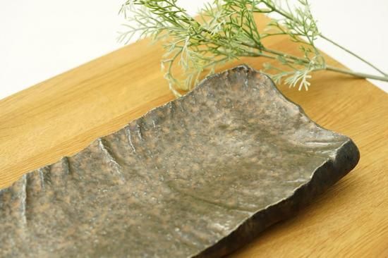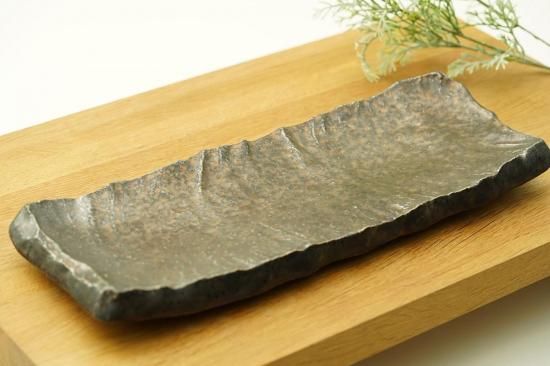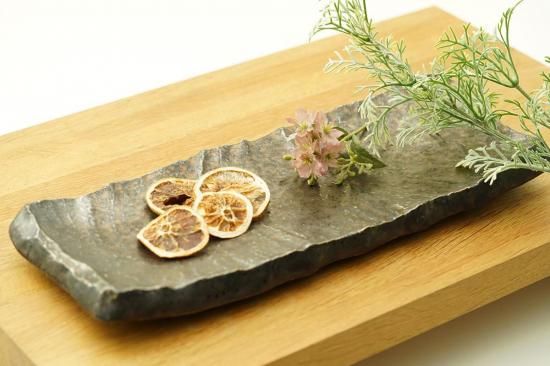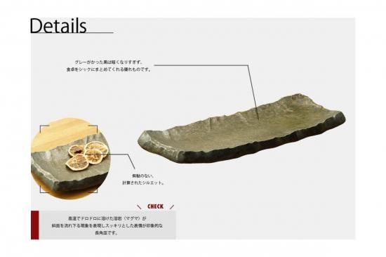 高温でドロドロに溶けた溶岩(マグマ)が斜面を流れ下る現象を表現した熔岩流 岩肌まな板皿はスッキリとした表情が印象的な長角皿です。