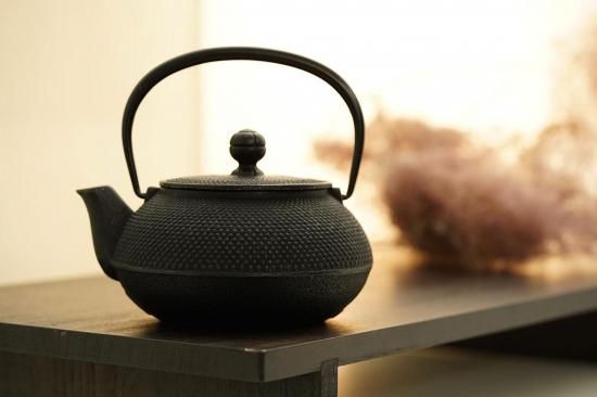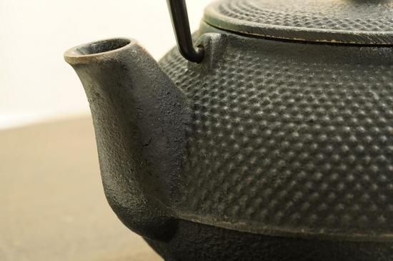 伝統的なアラレ文様を施した南部鉄瓶です。