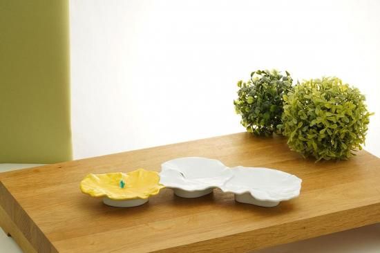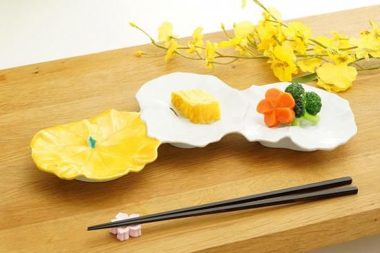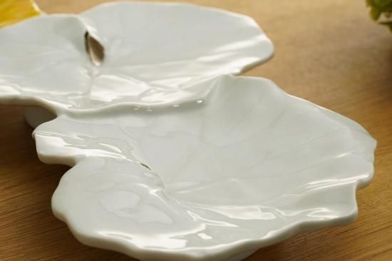 ※こちらの商品はツワ型繋ぎ皿黄交趾茎緑白磁茎Pのみの販売となります。