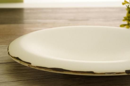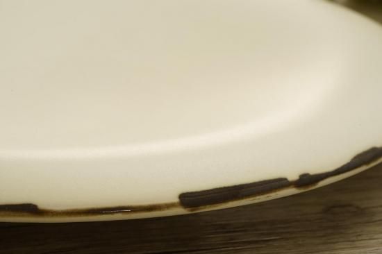 なめらかでマットな表面に、流れたようなフチ取りが特徴的な『THEORY(セオリー)』シリーズのクコンポート皿。
