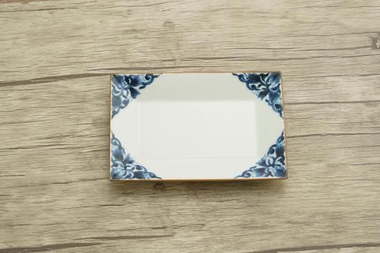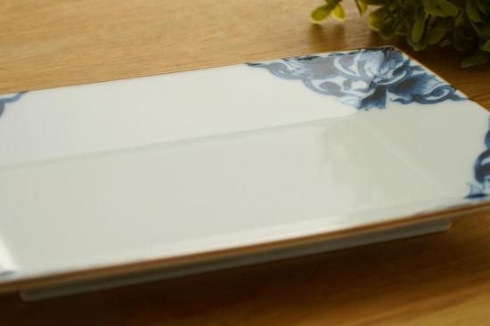控えめで上品ながらも存在感のある唐草絵が目を引く『長角皿(1.5)古染唐草』は、使うほどに心を奪われる美しさを放ちます。