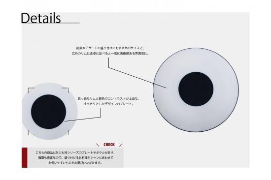 前菜やデザートの盛り付けにおすすめのサイズで、広めのリムは食卓に並べると一気に高級感ある雰囲気に。