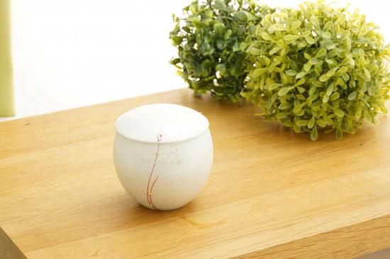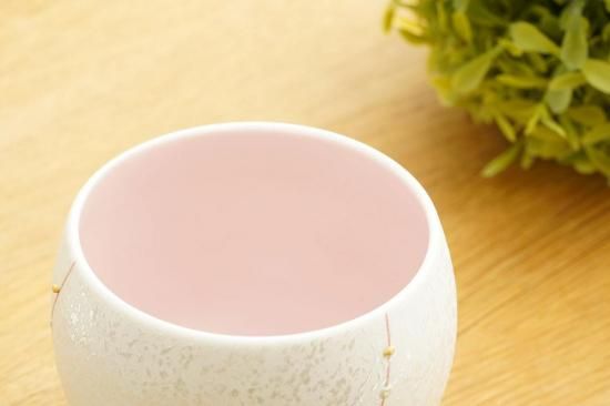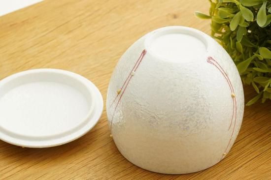 内側がうっすらとした桃色に色付いた蓋付きの小鉢。