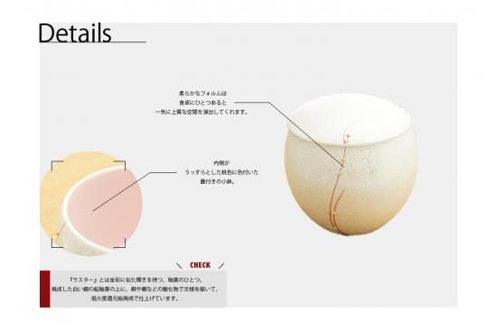 『ラスター』とは「落ち着いた輝き」という意味で、金彩に似た輝きを持つ、釉薬のひとつ。