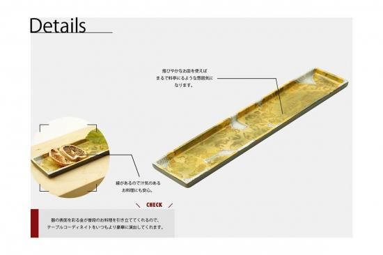 器の表面を彩る金が普段のお料理を引き立ててくれるので、テーブルコーディネイトをいつもより豪華に演出してくれます。