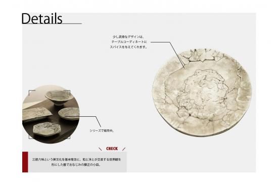 三徳六味の禅文化から継承された日本料理のコンセプトを忘れず大切にしながら、和・洋が複雑に交錯する現代の「食」の形態に対応したスタイルを器を通して表現しています。
