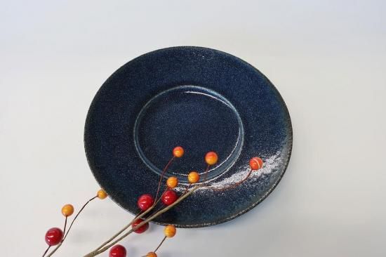 表面には焼き物独特の模様が入り、深い青が落ち着いた上品な雰囲気を演出します。