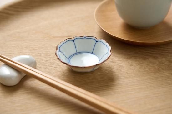 白磁の白に細く丁寧に引かれた呉須が際立つ、可愛らしいデザインの小皿。