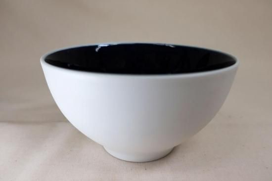 シンプルな白と碧色のコントラスが上品な、すっきりとしたデザインのボウル。