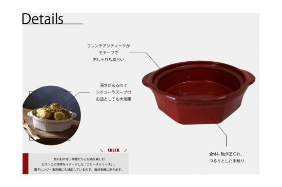 グラタンやラザニアなどのオーブン料理はもちろん、スープやシチューの器としてもおすすめです。