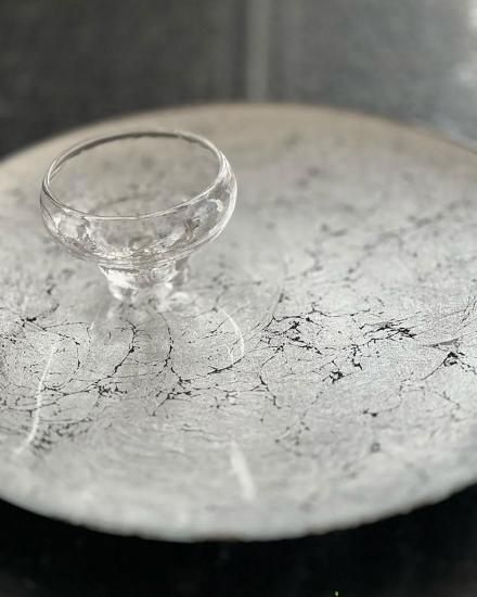 シルバーの輝きが目を引く、ガラス製プレートはテーブルの真ん中に出すメイン料理などの盛り付けに使いやすいサイズです。
