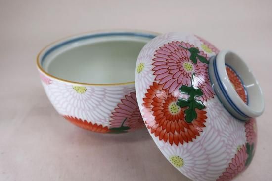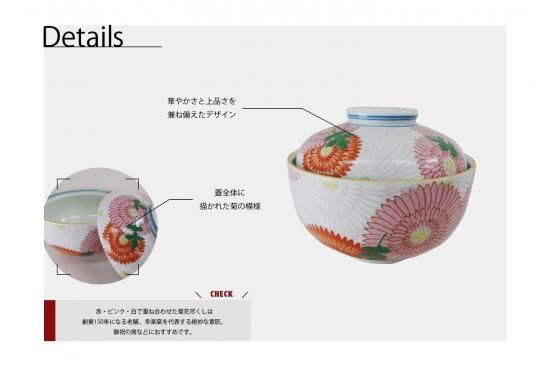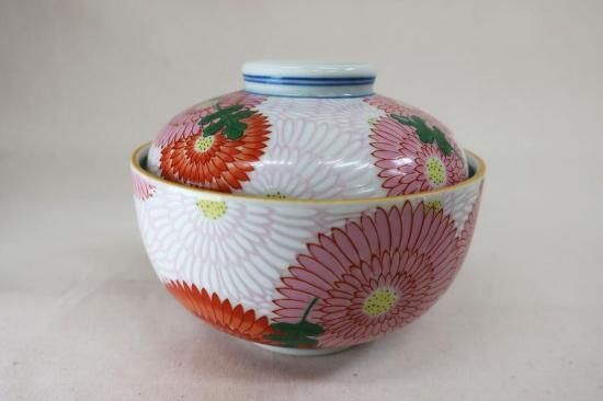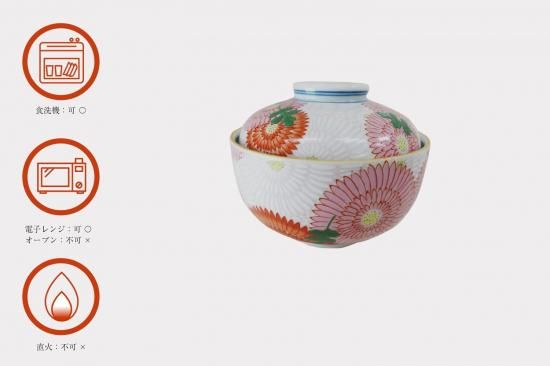 器全体に満開の菊の花があしらわれた蓋物椀。