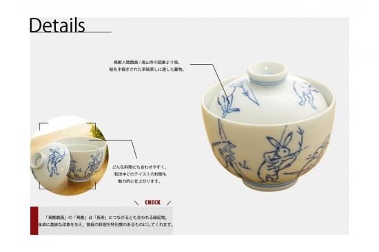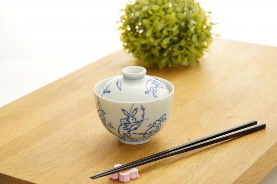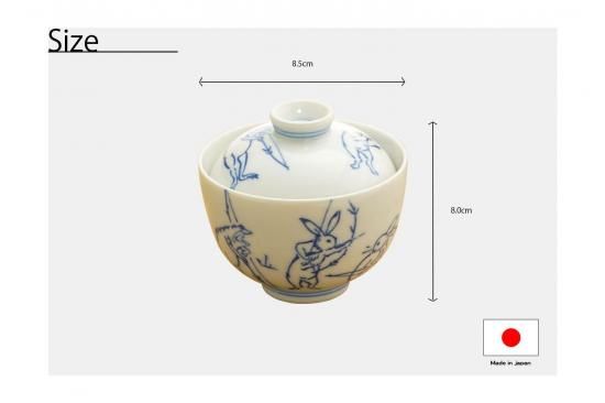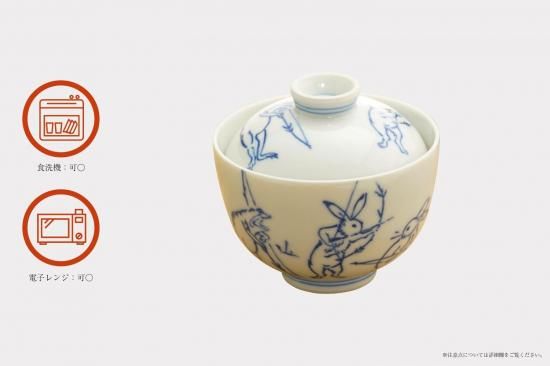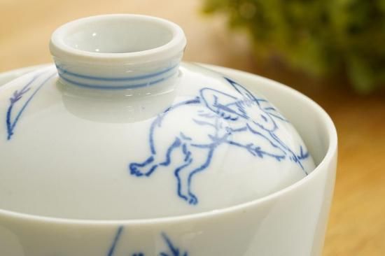 鳥獣人間戯画 / 高山寺の図案より兎、蛙を手描きされた茶碗蒸しに適した蓋物です。