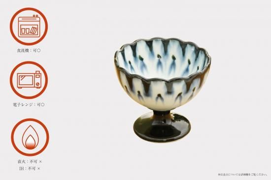 縁から垂れたような絵付けが印象的な器は、使うほどに心を奪われる美しさを放ちます。