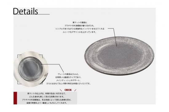 『黒マットプラチナ外渦23cmフラットプレート』は、食卓に高級感と個性をもたらす一品です。