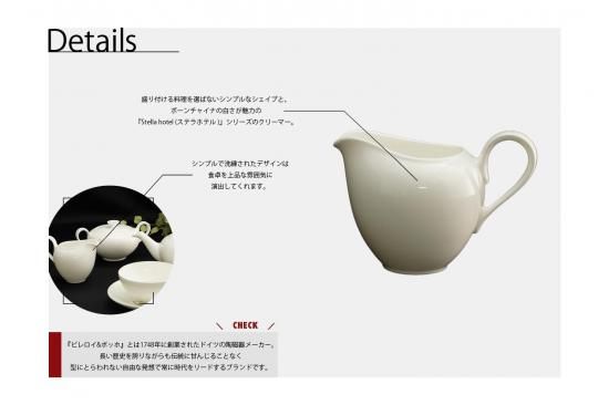 盛り付ける料理を選ばないシンプルなシェイプと、ボーンチャイナの白さが魅力の『Stella hotel (ステラホテル )』シリーズのクリーマー。