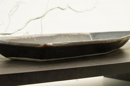 「黒炭釉六角皿大」は、風格溢れる陶器製のお皿です。