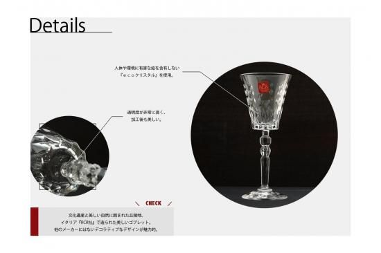 他のメーカーにはないデコラティブなデザインが魅力的で、透明度・強度も高く、コレクションの随所にイタリアらしい華のある職人気質を感じることが出来ます。